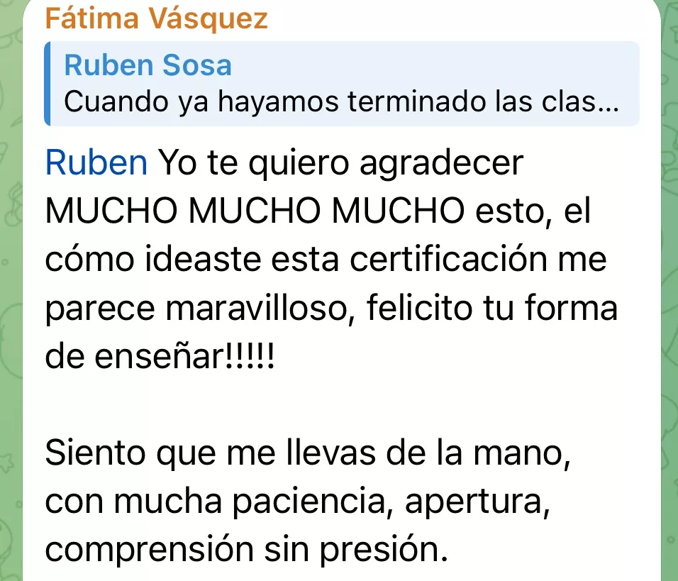 Tendrás acceso a mi chat privado en Telegram para apoyo diario durante la formación. Allí estarán también el resto de alumnos.