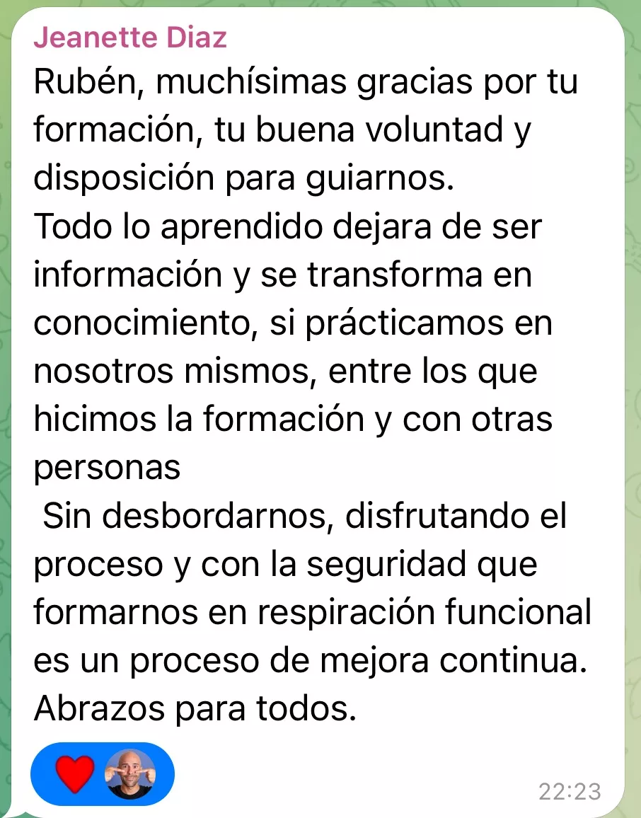 Hoy, quiero ir más allá. Busco personas curiosas y apasionadas que quieran formarse como instructores de respiración. Si deseas ayudar a otros a manejar el estrés, la ansiedad o mejorar su bienestar, esta es tu oportunidad de aprender técnicas científicas que pueden transformar vidas, empezando por la tuya.