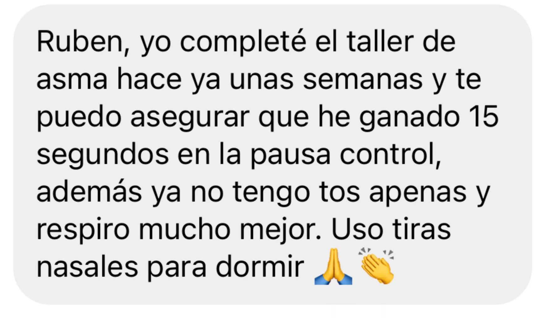 Este taller está basado en técnicas comprobadas que han ayudado a miles de personas a mejorar sus síntomas de asma y rinitis. No hay soluciones instantáneas, pero con dedicación y práctica, los resultados son reales y duraderos.
